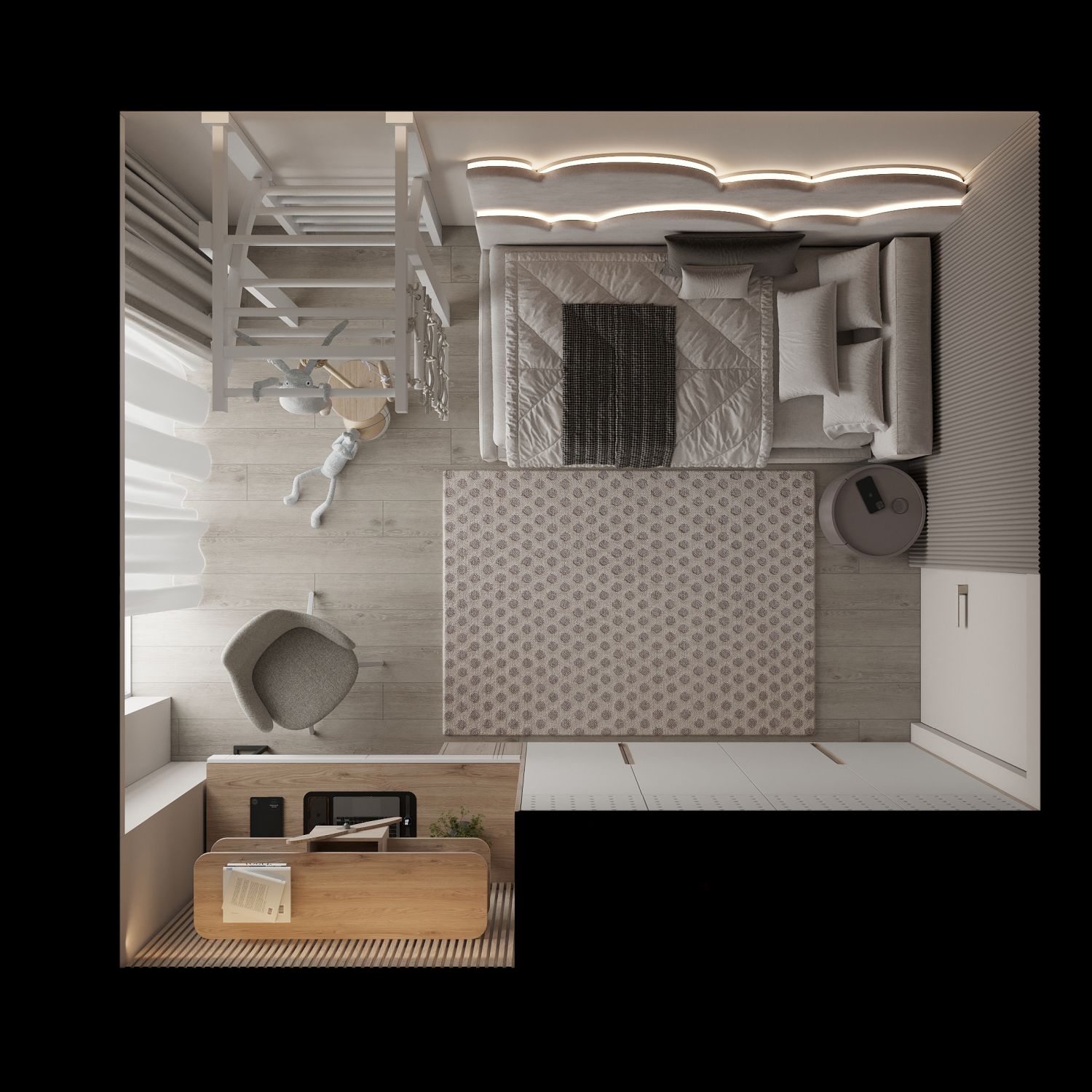 – Children’s bedroom + bathroom