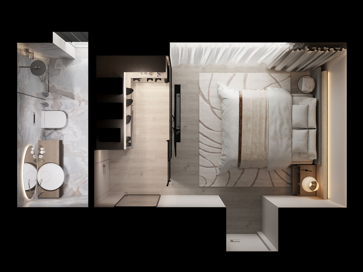 Master bedroom + bathroom