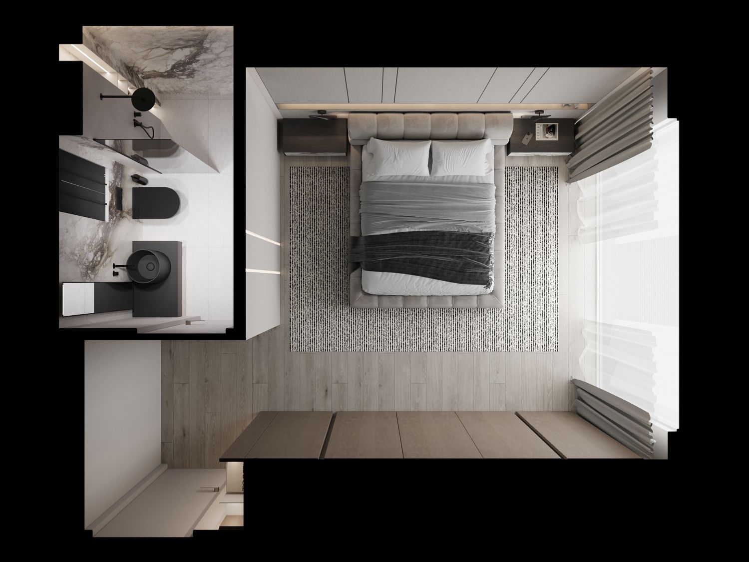 Master bedroom + bathroom